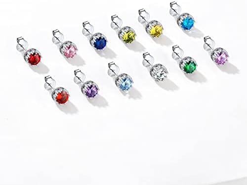 ChicSilver 925 Sterling Silver Sparkling Heart/Round/Princess Cut Birthstone Stud Earrings for Women Birthday Jewelry (with Gift Box)