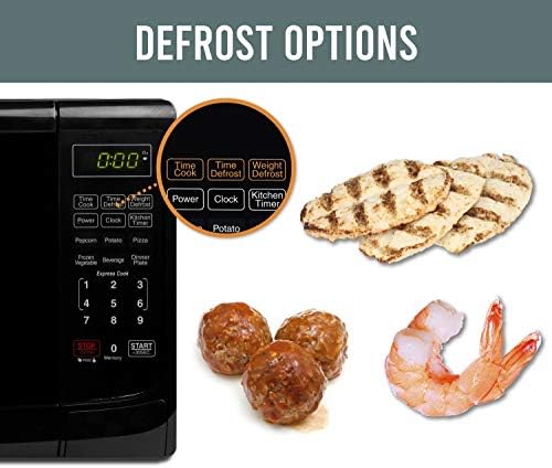 6 one-touch cooking functions for popcorn, potato, pizza, frozen vegetable, Beverage, or a dinner plate