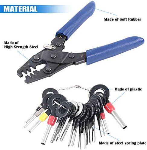 ★【Durable Quality】: The crimper tool which head is made of high-quality carbon steel, strong and durable for long time use. Ergonomically designed and non-slip rubber handles are comfortable to handle. The terminal removal tools are made of steel and plastic, flexible, resilient and durable.