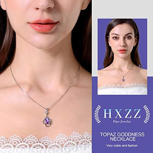 HIGH-QUALITY – Metal of chain (18+2 in)and pendant: 925 Sterling Silver (And 18k white gold plating surface). Big pendant and each chain is affixed with the highest quality sterling sliver “S925”. GEM stone is a natural amethyst (8*10mm) embellished with small Synthetic cubic zirconia. February Birthstone Gemstone amethyst: high quality