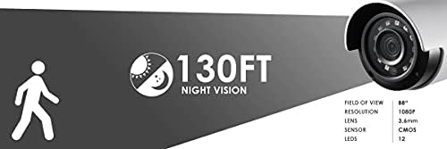 NIGHT VISION – The IR illuminators allow this system to see in the dark up to 130ft/40m away in regular nighttime conditions and 90ft/27m in total darkness