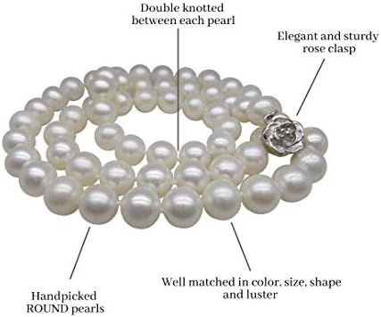 EXQUISITE CRAFTSMANSHIP ***** Carefully double knotted between each pearl; Finished with sturdy rose-shaped clasps; This fine pearl jewelry is a symbol of wisdom and is believed to offer protection and attracts good luck and wealth.