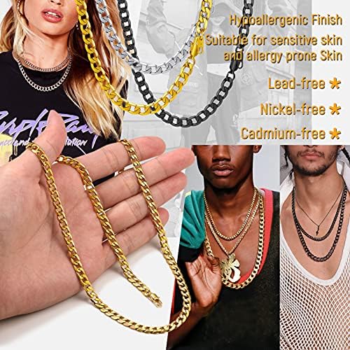 PROSTEEL Stainless Steel Cuban Chain Necklaces/Bracelets for Men Women, Black/18K Gold Plated, Nickel-Free, Hypoallergenic Jewelry, 4mm-13mm, 7.5″/8.3″,14″-30″, Come Gift Box