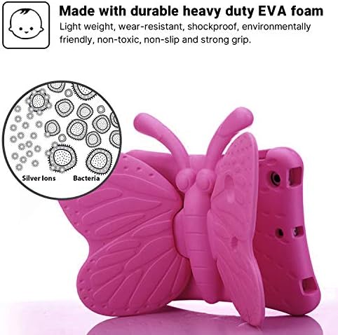 Simicoo iPad 7 8 10.2 Kids Case iPad 9 10.2 3D Cute Butterfly Case for Kids Light Weight EVA Stand Shockproof Rugged Heavy Duty Kids Friendly iPad Cover for Girl iPad 10.2 iPad 7th 8th 9th (Rose)