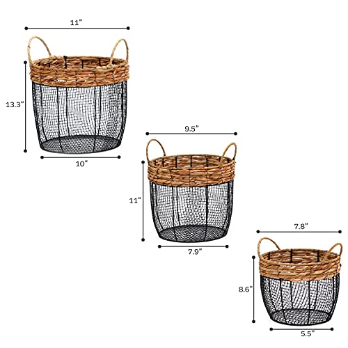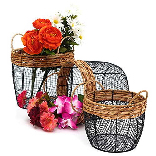 Trademark Innovations Oval Wire Tall Garden Home Décor Baskets with Wicker and Handles – Set of 3
